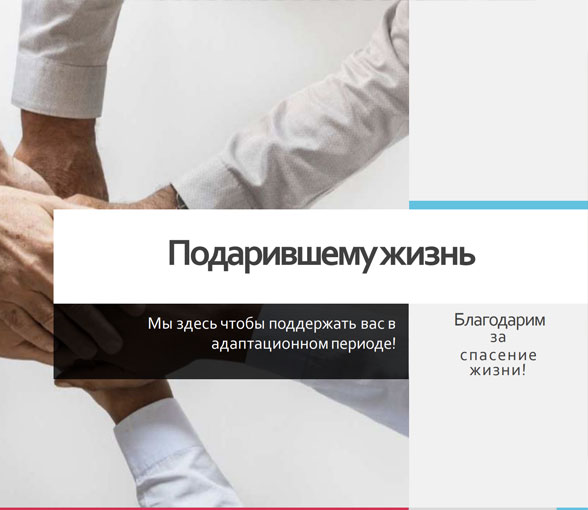 Также, мы помогаем повысить осведомленность общественности о медицинских и научных исследованиях в сфере трансплантации и органном донорстве, доказывающих позитивную роль в спасении жизни человека, и что донорство почек не несет риска для донора и сопряжено с минимальной степенью дискомфорта.